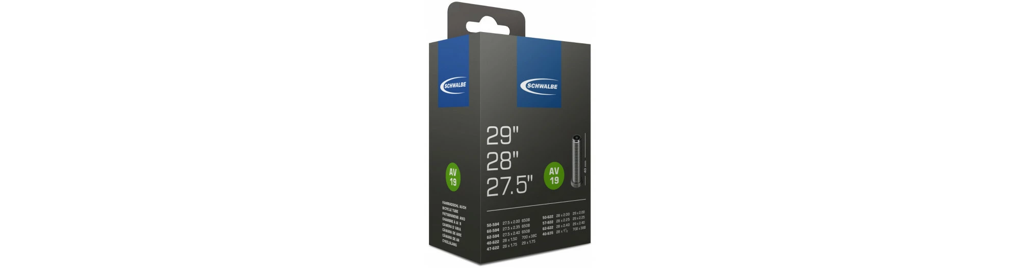 Chambre à air AV19 27.5×2.00 à 29×2.40 valve Schrader